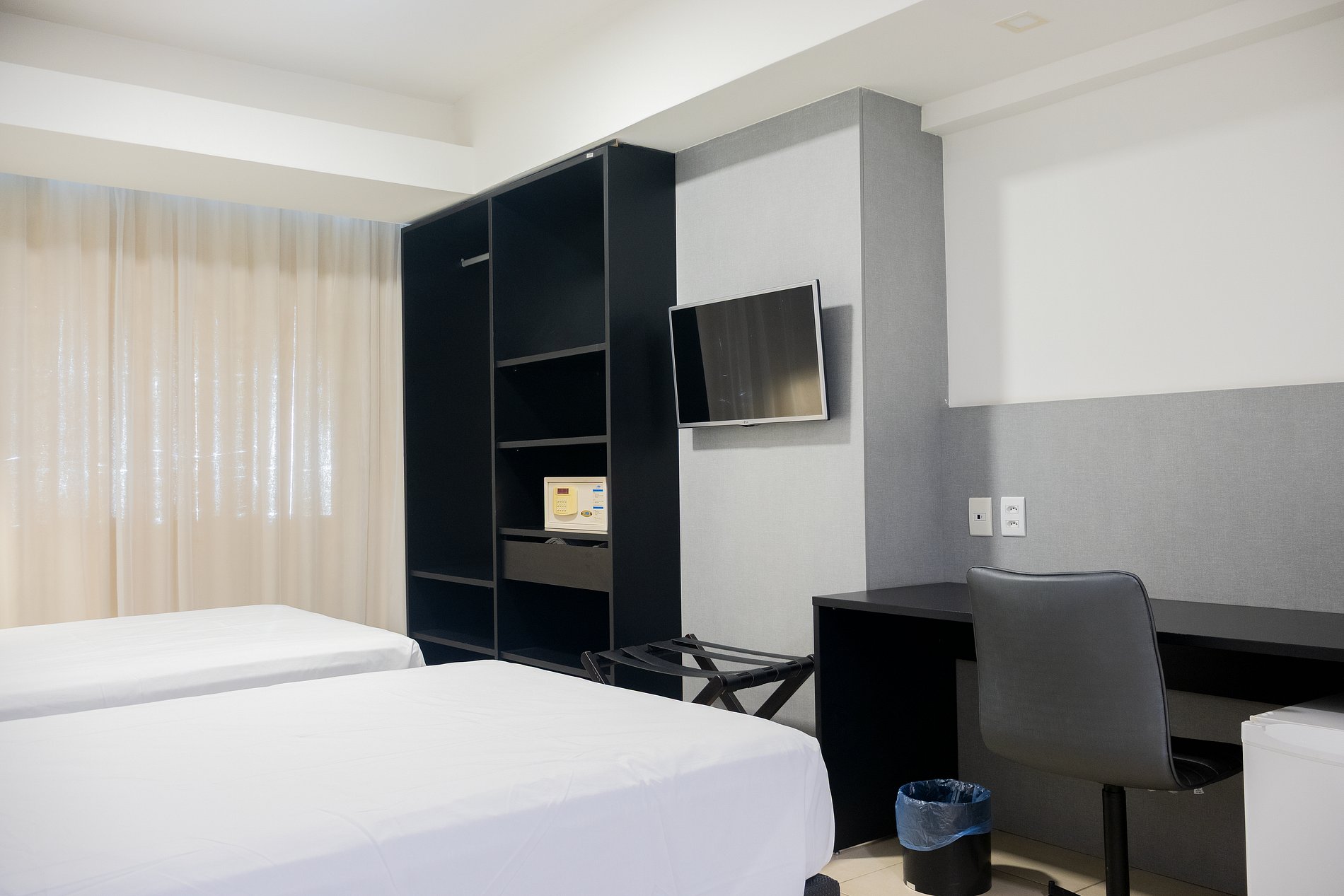 Aconchego e praticidade em um só lugar. Nosso quarto foi cuidadosamente preparado para proporcionar descanso após um dia intenso, com duas camas de solteiro confortáveis, ar-condicionado, Wi-fi, cofre, frigobar e TV de tela plana.